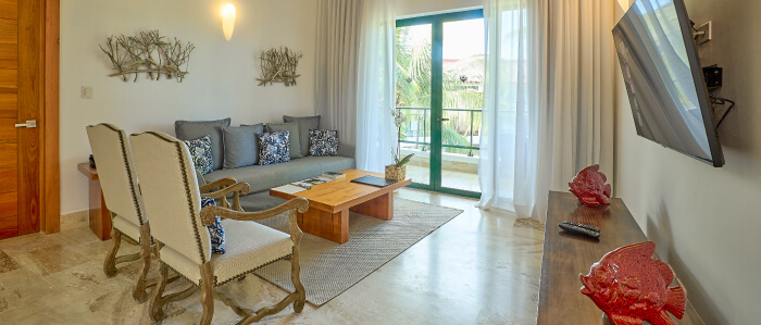The two bedroom suite is fully equipped with a kitchen, living and dining room area. Enjoy lunch or dinner with your family and friends from the terrace or balcony of your room.
